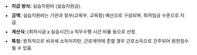 법적 기준과 현실 표준현장실습생은 근로자가 아닌 '학습자' 신분이므로 근로기준법이 직접 적용되지 않습니다. 대신 교육부 지침에 따라 최저시급의 70% 이상을 실습지원비 명목으로 지급해야 합니다. 2024년 기준 최저시급 9,860원의 70%는 6,902원이며, 주 40시간 실습 시 월 약 120만 원 수준입니다.