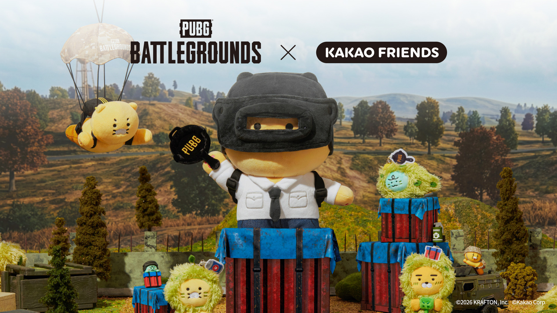 PUBG의 배틀그라운드가 카카오프렌즈와 손잡고 협업 굿즈를 선보이며,